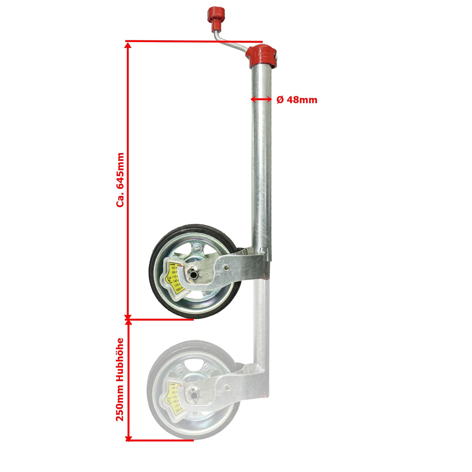 Stützräder gehören zu den Stützeinrichtungen an Zentralachsanhängern, welche die STVZO vorschreibt, wenn die Stützlast mehr als 50kg beträgt. Sie müssen in der Höhe verstellbar und unverlierbar angebracht sein.