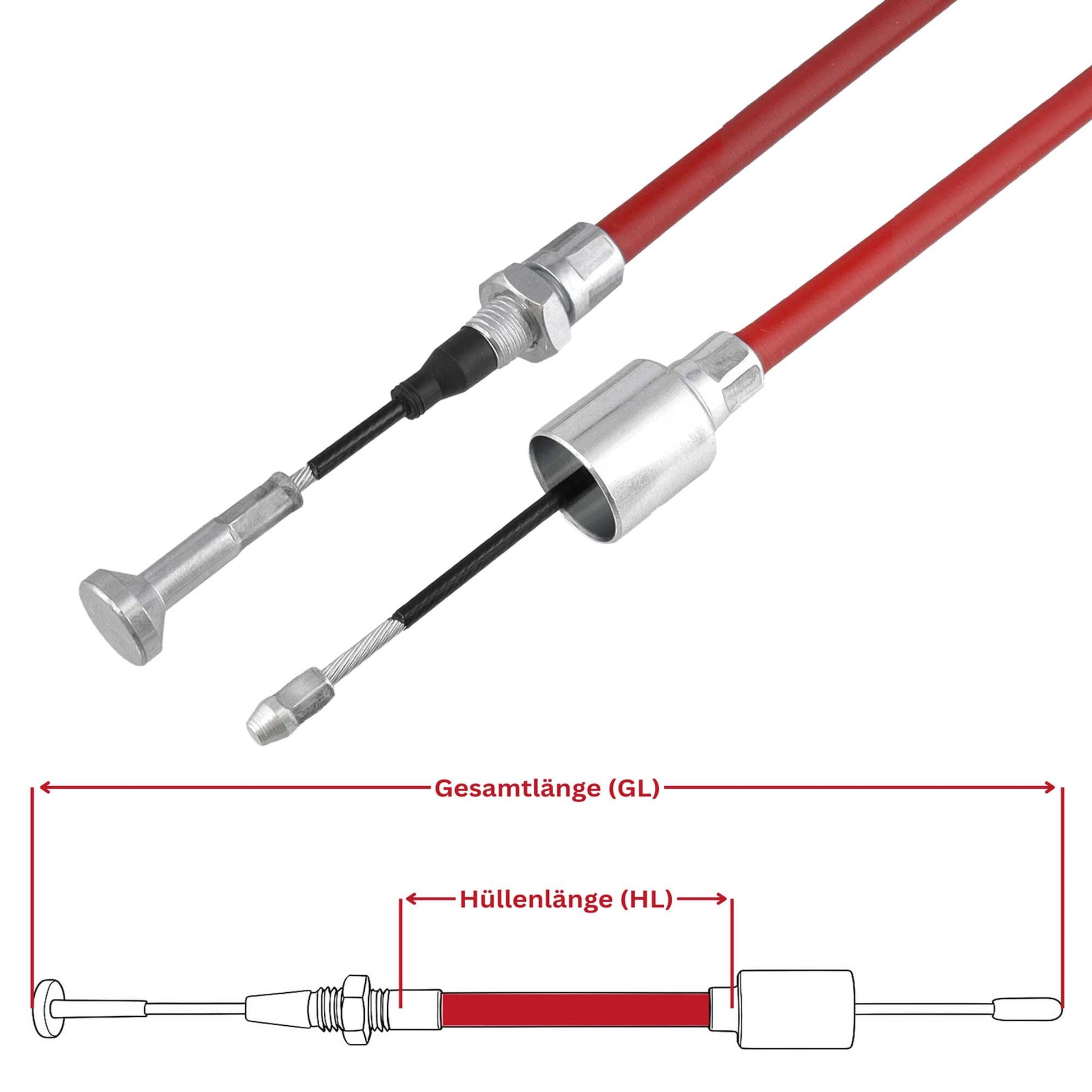 Die passende Hüllenlänge (HL) und Gesamtlänge (GL) können Sie direkt beim Kauf auswählen, um den Bremsseilzug perfekt an Ihr Anhängermodell anzupassen.