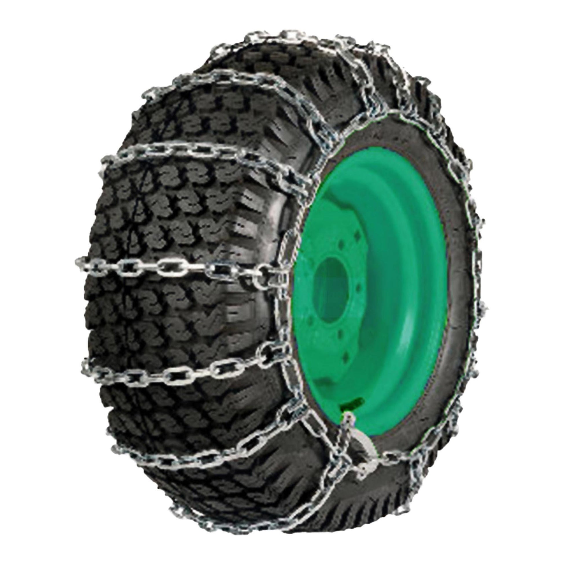 Durch die vielen verschiedenen Hersteller und Arten von Reifen (ob Rasenreifen, AS Profilreifen, Big Reifen) für Rasentraktoren, Kehrmaschinen, Schneefräsen etc. können die Größenangaben sehr variieren und es kann passieren, dass eine Kette dann nicht auf Ihren Reifen passt.