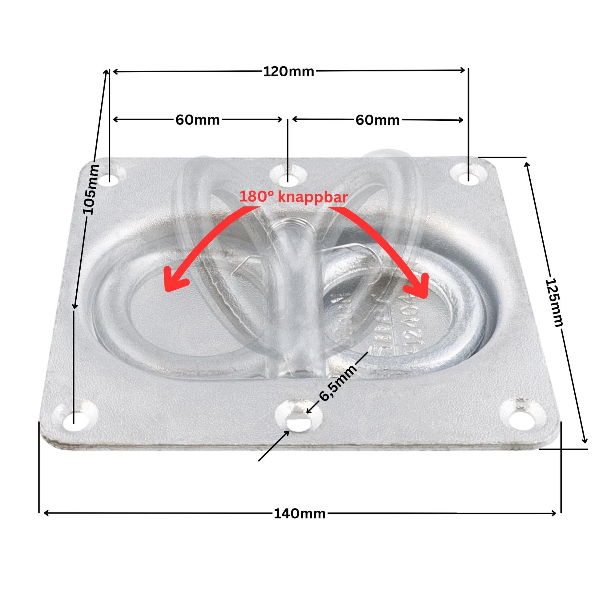 SUER Anhänger-Zurrring mit doppelter Bodenplatte – 180° klappbar, 1000 kg Zugkraft