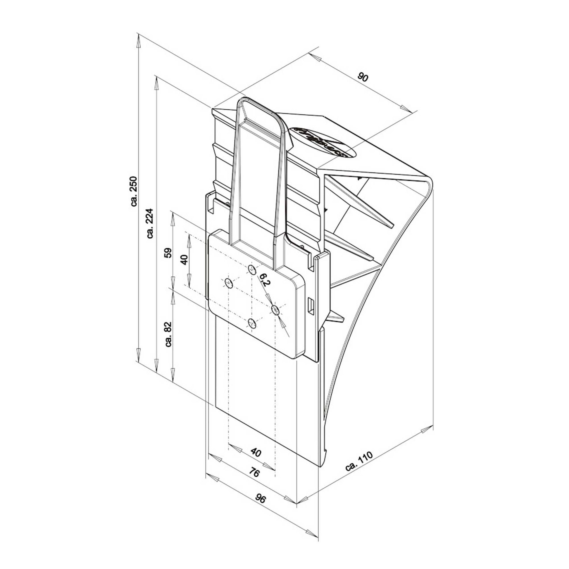 - Maße (LxBxH) Halterung: ca. 167 x 95 x 20mm