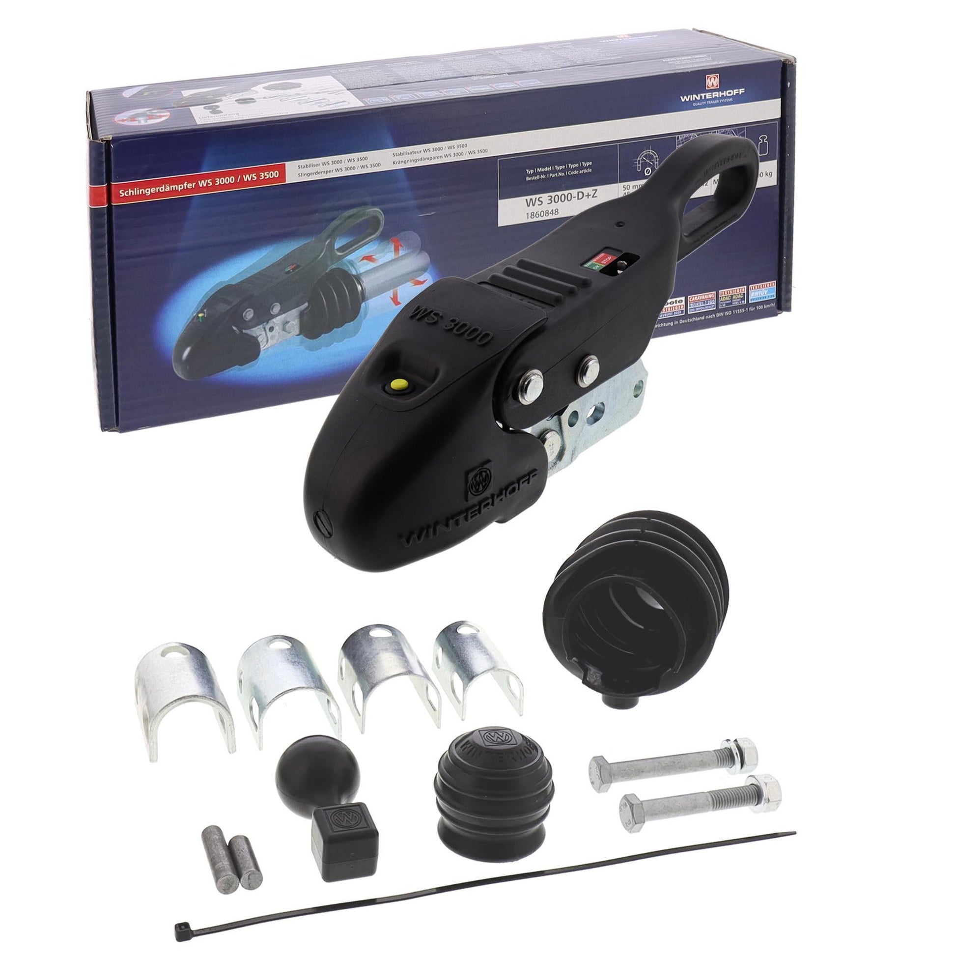 Die WS 3000 ist ein Sicherheits-Schlingerdämpfer. Nach Ankuppeln und Betätigen des Bedienungshandgriffs werden zwei spezielle Reibbeläge von links und rechts, an die Anhängerkugel des PKW gepresst. Pendel- oder Nickbewegungen werden somit bereits im Ansatz wirkungsvoll reduziert.
